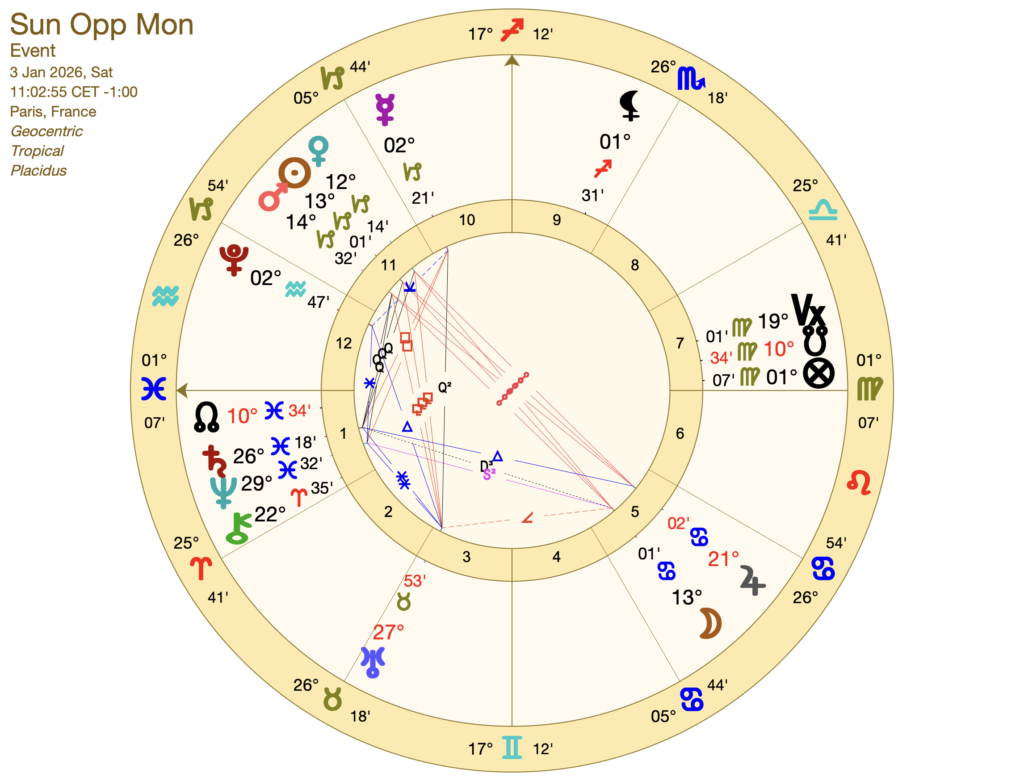 (Soleil carré Neptune – Vénus carré Saturne – Jupiter carré Chiron, le 21 – Vénus quinconce Uranus le 23, carré Neptune – Mercure demi-carré Pluton – Vénus en Capricorne, le 24 – Mercure quinconce Jupiter le 27 )